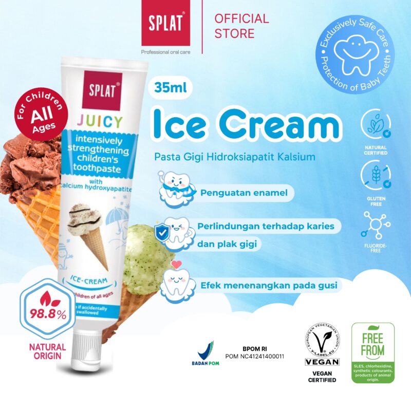 Pasta gigi dengan rasa es krim yang dirancang khusus untuk anak-anak dan remaja yang suka sensasi manis dan menyenangkan saat menyikat gigi. Diformulasikan tanpa fluoride, tanpa SLS, dan menggunakan bahan alami yang lembut di gusi serta aman jika tertelan dalam jumlah kecil.