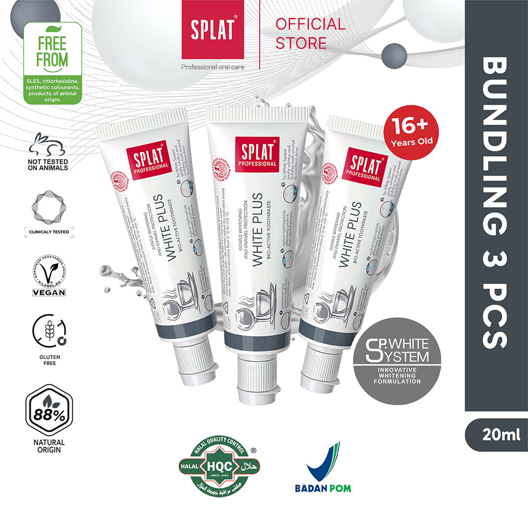 SPLAT Professional White Plus Travel Pack (3x20ml) – Pasta Gigi Tanpa Fluoride & SLS, Cocok untuk Travelling – Pasta Gigi Untuk Usia Dewasa