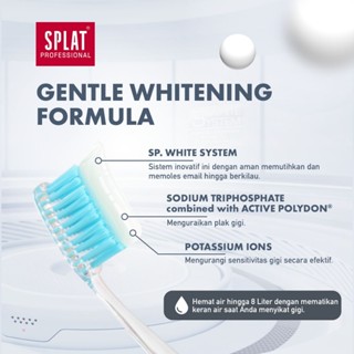 SPLAT WHITE PLUS pasta gigi Bio-aktif yang memutihkan dan melindungi enamel dengan lembut.